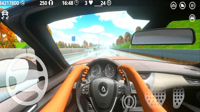 تعتمد اللعبة على محرك فيزيائي يحاكي سلوك السيارة على الطريق، مثل التأثر بالسرعة في المنعطفات، ومسافة الكبح، وإمكانية انزلاق السيارة عند الضغط الشديد على المكابح أو الانعطاف بسرعة عالية، مما يمنحك شعورًا مختلفًا عن ألعاب السيارات الأركيدية البحتة.